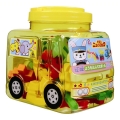 遊び終わったら取っ手付きの幼稚園バス型ケースにブロックを収納して、お片づけの練習もできちゃいます。