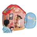 本当に音が鳴る呼び鈴の「ピンポン」付き!家具付きの1LDKのお部屋の中は、キッチンやリビングダイニング、寝室、トイレ、おふろ、窓にはカーテンもついて、本物のおうちみたい。お子様2~3名は入れる大きさですが、遊び終わった後は小さく、たたんで しまえちゃうから、邪魔になりません。