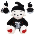 おめかしセレクション29 「お着物セット(男の子用)」は黒地の羽織はかまタイプのかっこいいお着物で、赤いハートの紋がとってもキュートなプリモプエル、プリモプエラ、プリモピース用のお着物セットです。男の子向けの羽織袴タイプのお洋服でびしっとかっこ良くおしゃれを楽しめます。プリモプエルお着替えタイムにお勧めの1枚となっています。