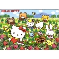 ハローキティと仲間たちの楽しく触れ合う様子が描かれた楽しい絵柄はお子様の好奇心を刺激します。裏面はクレヨンで描いて乾いた布で拭けば繰り返し使えるおえかきボードになっています。ピースのカットはお子様が大好きなキティちゃんやハローキティの仲間たちの絵柄で楽しめる工夫を施しています。